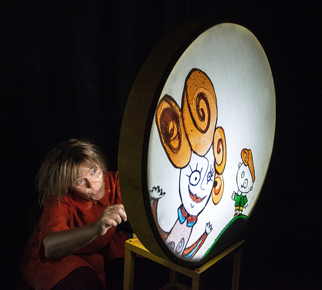 "Hundliv" är humoristisk och lite vildsint skuggspelsföreställning som berättas med mycket musik, färgstarka skuggor och skådespel.
